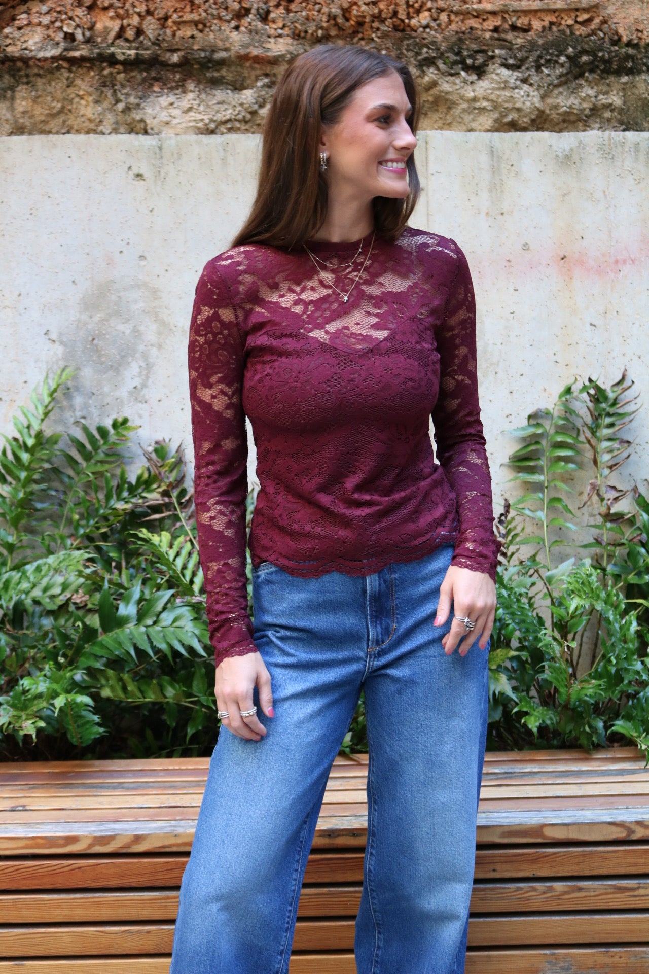 Sheer floral lace envelops the neck, shoulders, and sleeves, seamlessly blending into the sweetheart lined bodice of this refined top. An elevated piece, it pairs effortlessly with skirts or pants for polished outfits.