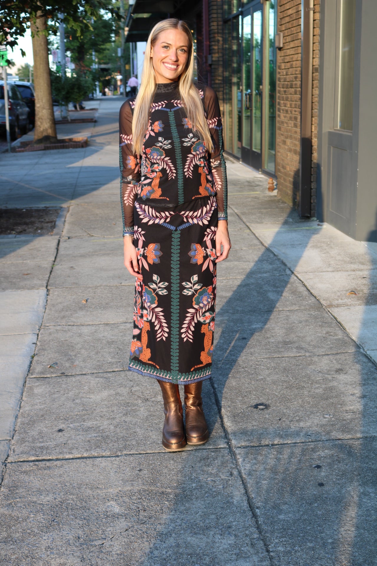 Make a bold statement this fall with the Marta Top in Caballero's striking Zulu Prince Cheetah print. This long-sleeve style features a sleek funnel neck and a close, flattering fit, perfect for elevating any outfit with vibrant color and graphic detail.
