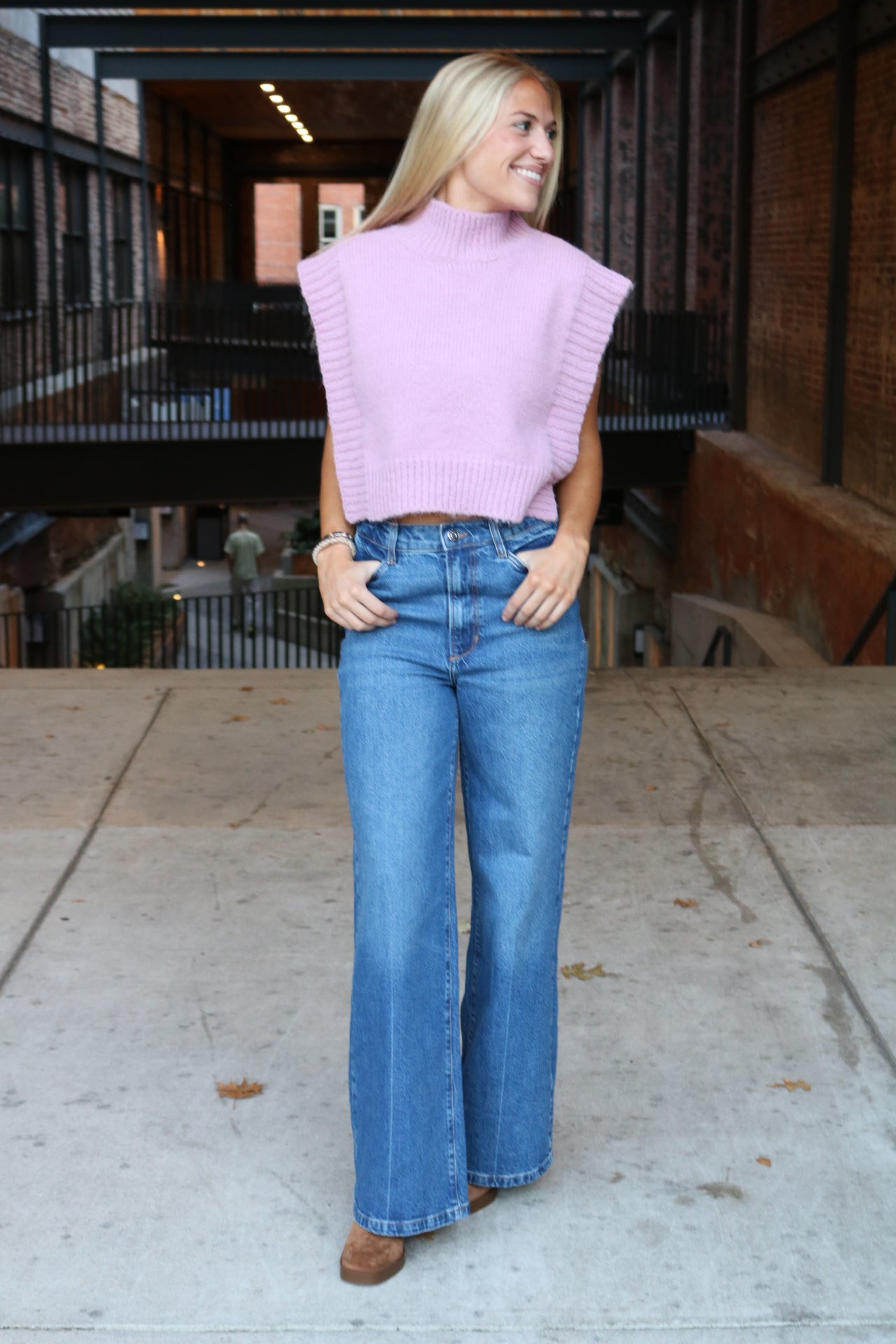 A modern twist on a classic, the Rooney Open Side Sweater Vest adds cool, effortless dimension to any layered look. Crafted in a chunky ribbed knit, this boxy silhouette features wide side openings and deep armholes—perfect for pairing over tees, button-downs, or flowy dresses. A structured mock neckline lends a touch of polish, making it an easy choice for transitional weather or elevated everyday styling.