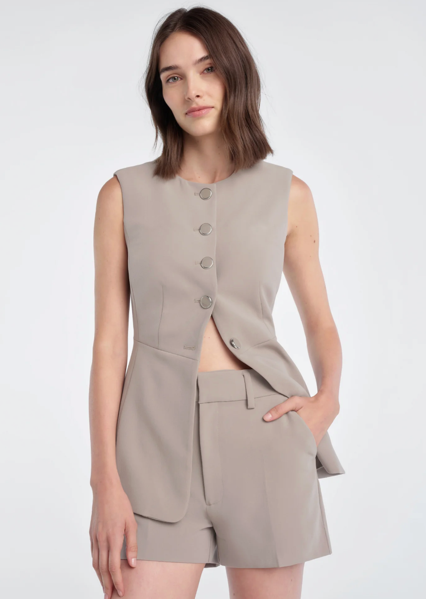 We love a suiting short and this mini version is a favorite. It's cut from a suiting blend with a 11.75" high rise, 2.5" inseam and front slant pockets. For a chic set, pair with The Clocking In Top
